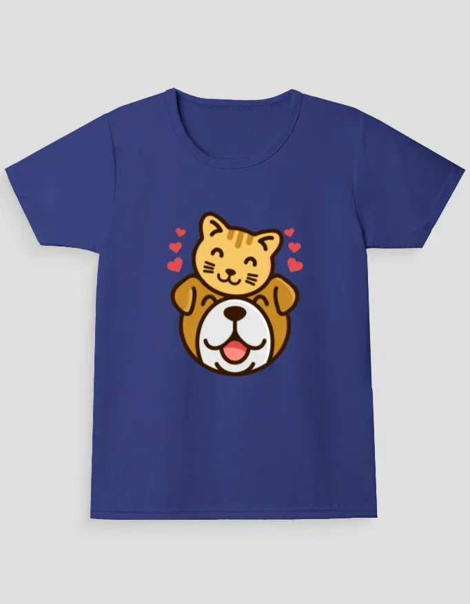 Cat and Dog Graphic T-Shirt for Girl's