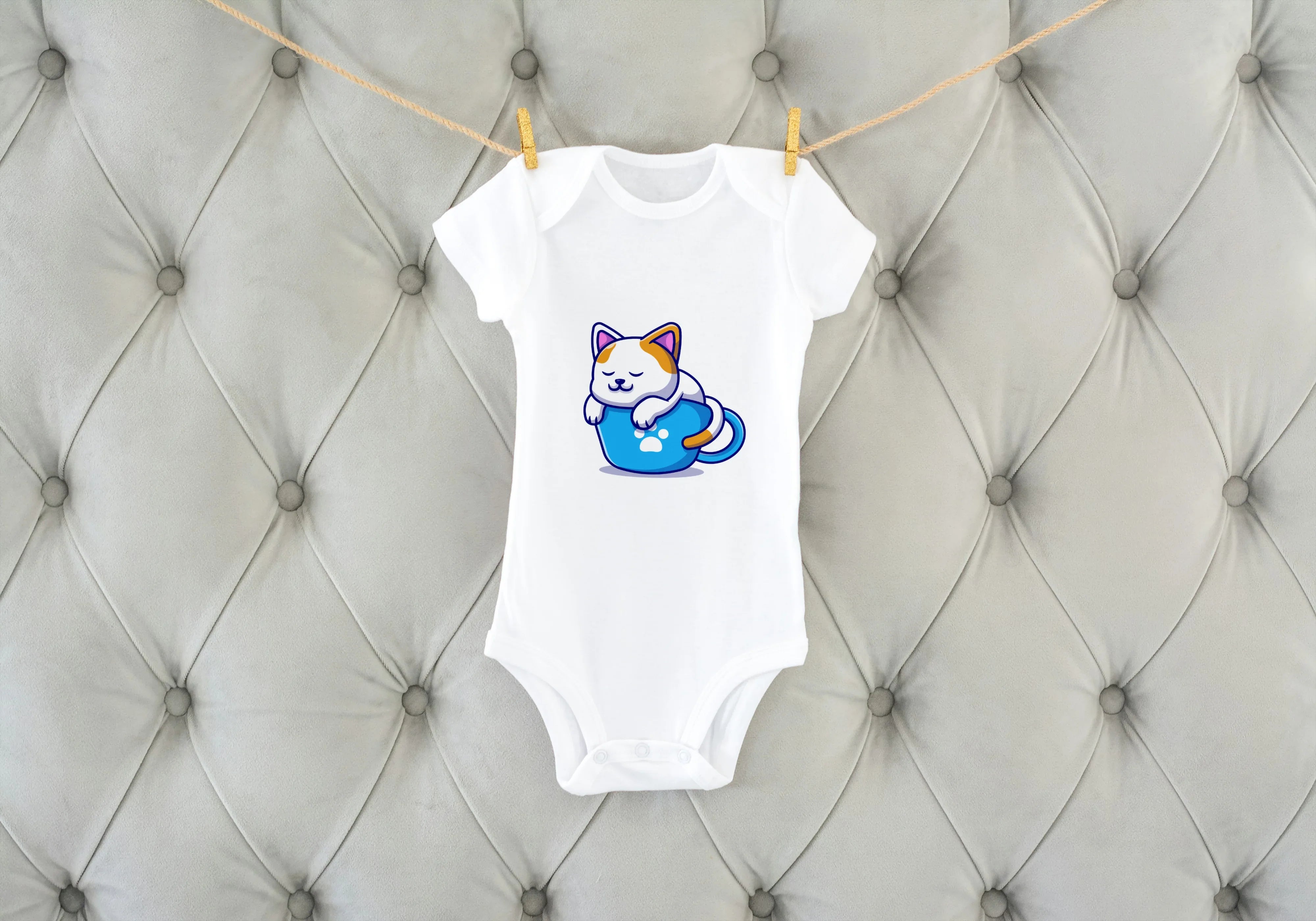 Kitten in Cup Graphic Kids Rompers