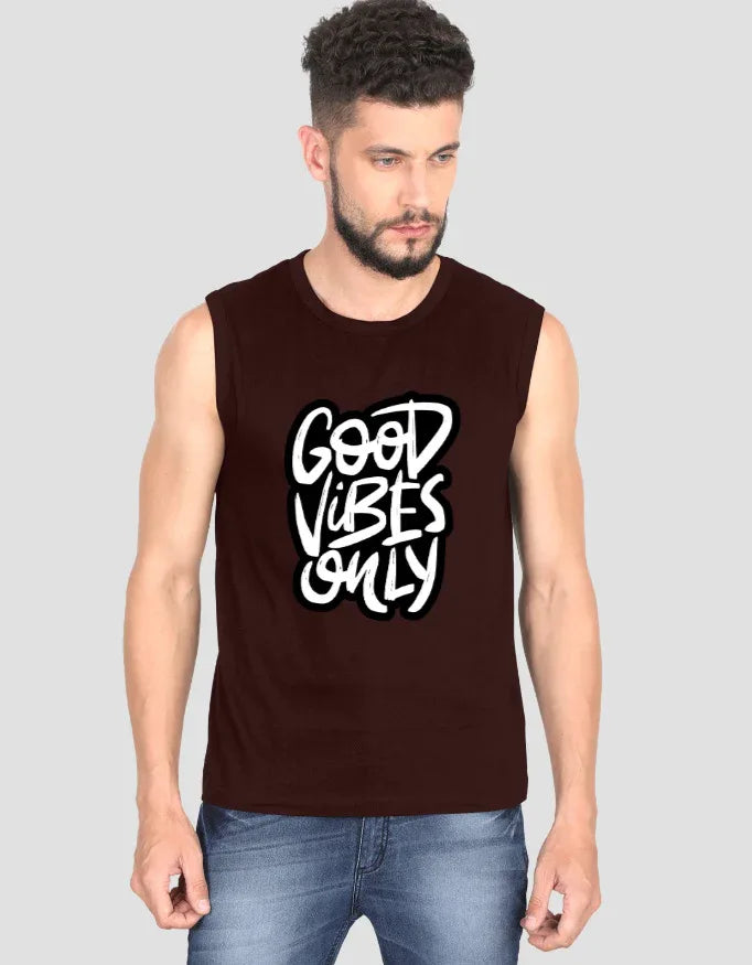 Good Vibes Only Graphic Sleeveless T-Shirt for Men