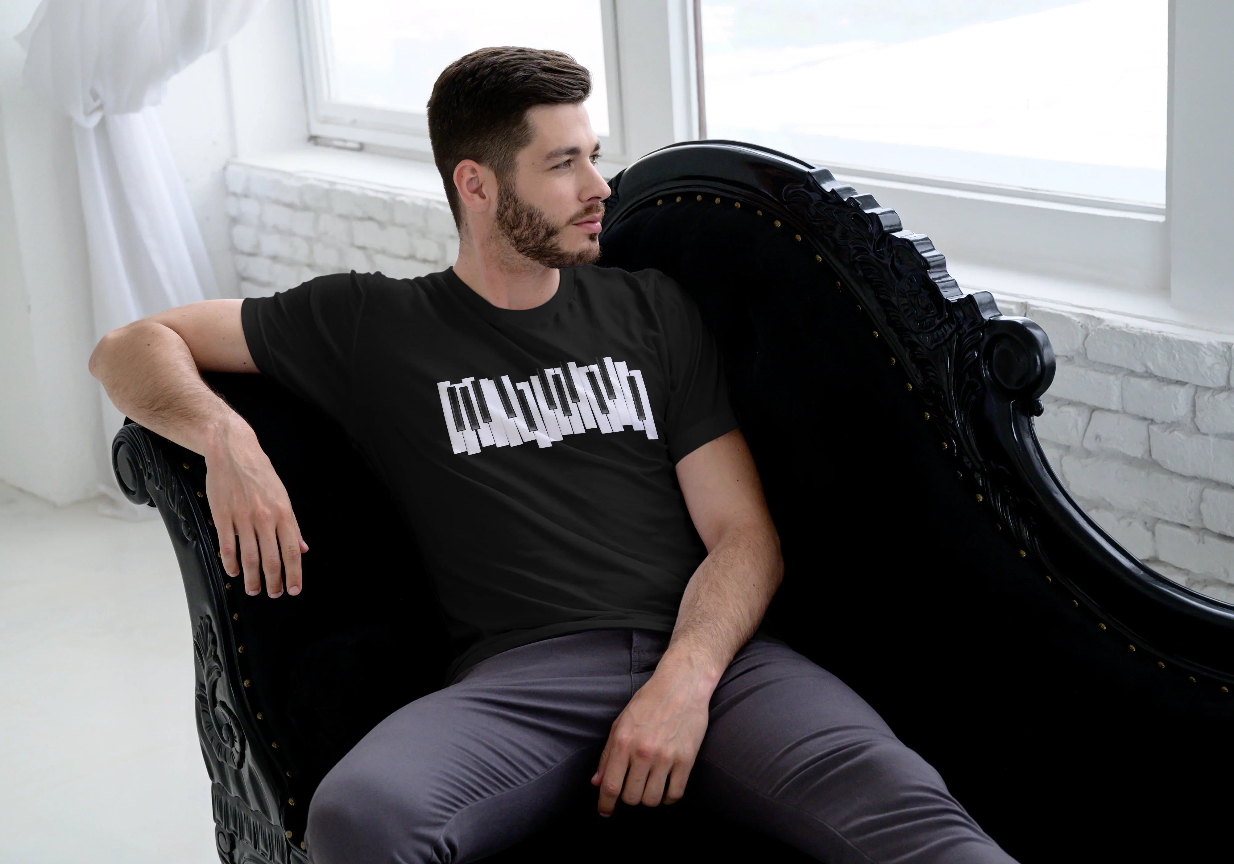 Piano Graphic Classic Crew T-Shirt for Men