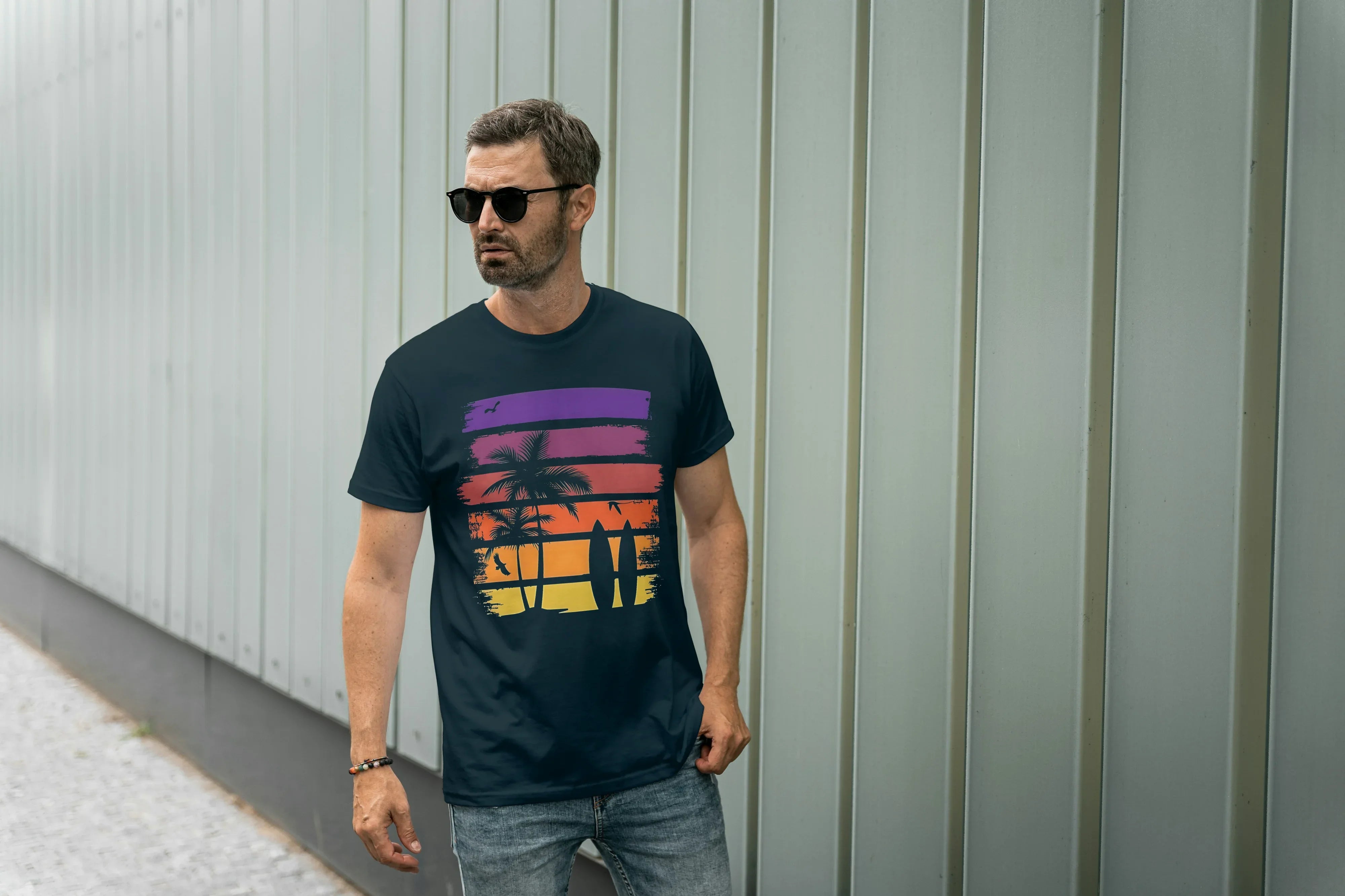 Beach Surf Graphic Classic Crew T-Shirt for Men