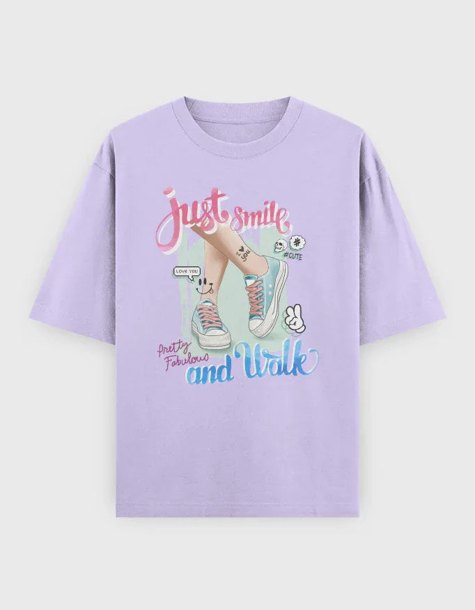 Just Smile and Walk Graphic Oversized Classic T-Shirt for Women