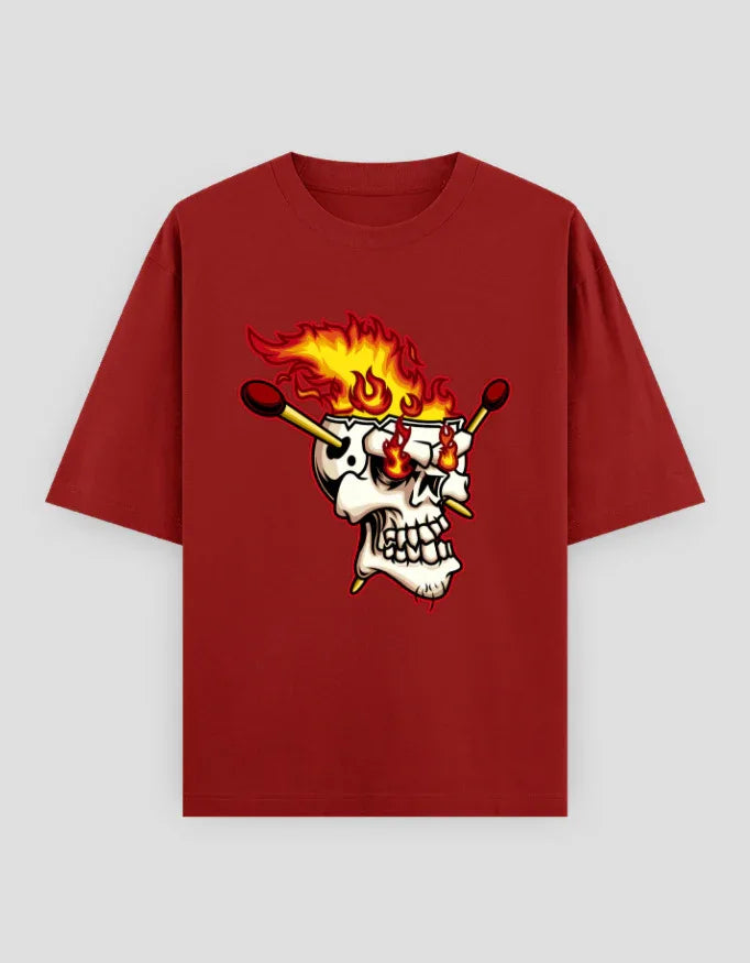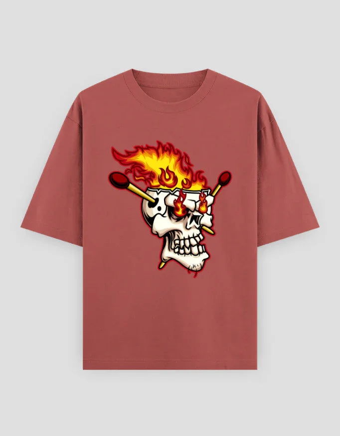 Fiery Skull Graphic Oversized Classic T-Shirt for Men