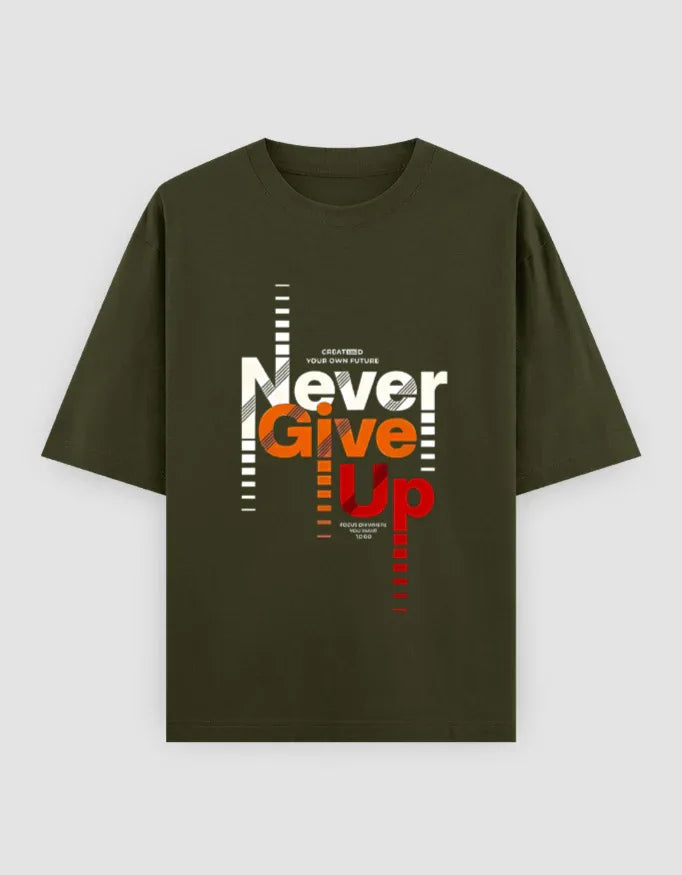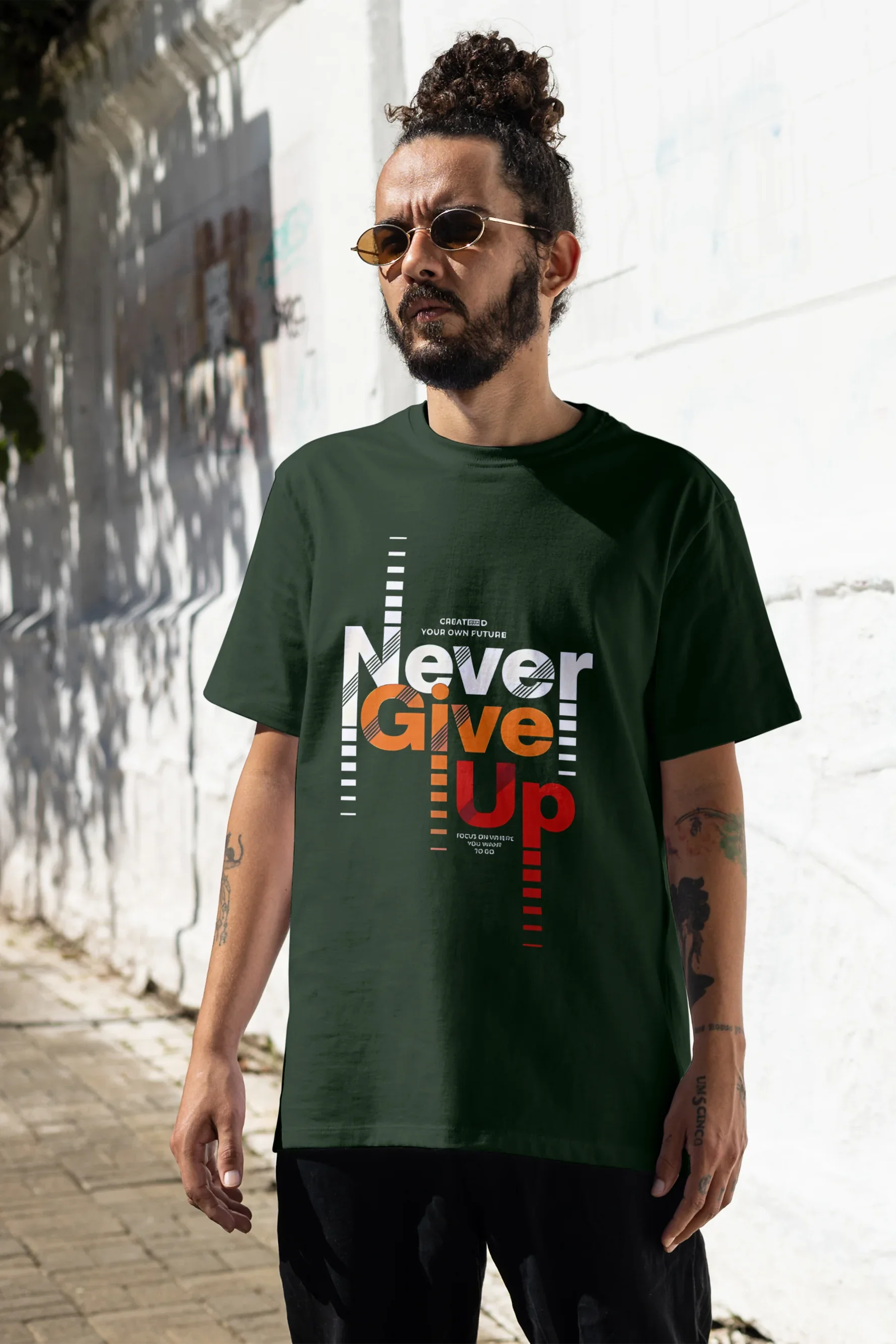 Never Give Up Graphic Oversized Classic T-Shirt for Men